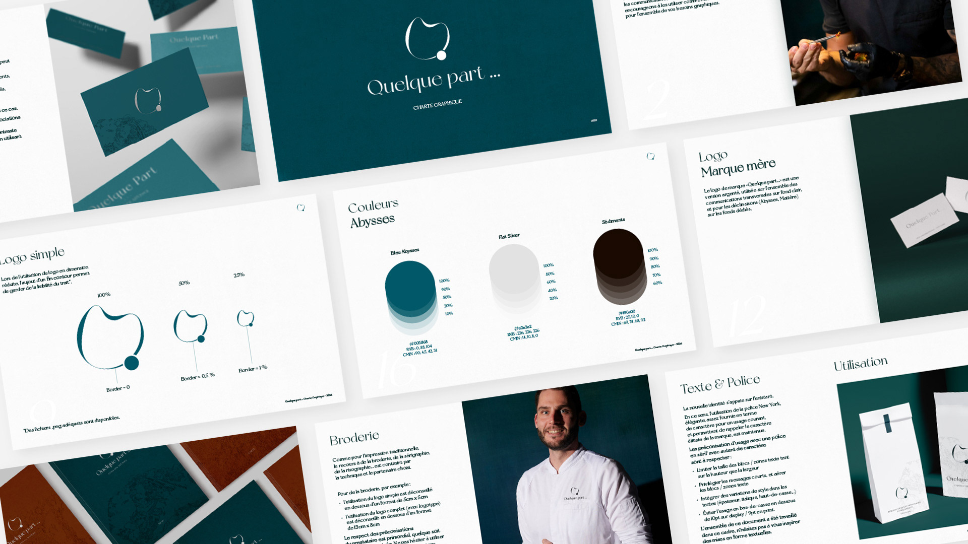 Conception de l'identité de marque et du logo des lieux de bouche Quelque Part...